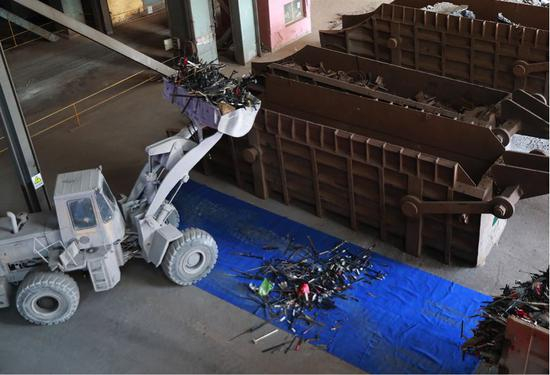 就在刚才,在中国公安部的一声令下,146个中国城市将14万余支非法枪支(含制式枪支、气枪和猎枪)、以及一大批炸药、雷管等爆炸物,一起倒入了各地钢厂滚烫的炼钢炉内,不仅将这些枪支彻底销毁,更表达了中国政府禁枪的明确立场!