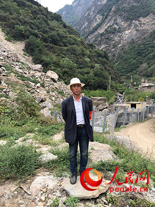 阿尔寨地灾监测员杨德全,当年就是他巡查过程中发现灾情,及时上报当地政府。(人民网 朱江 拍摄)