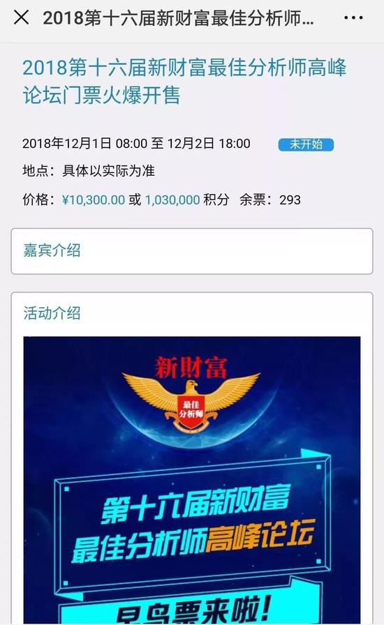 记者自新财富官网获悉,此次最佳分析师评选论坛的参会票价为1.03万元,记者拨打了官网上负责票务的客服电话,未能接通,截至发稿时,新财富退票渠道尚未公布。
