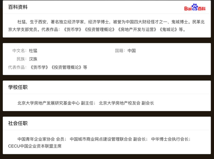 此外,在中国博硕士论文数据库中也找不到这位自称是北大学者的杜猛“博士”的任何论文。所以这位“杜猛”的真实身份十分可疑。