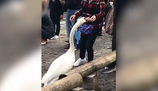 疑似中国游客用纸挑逗天鹅被抢 掐脖子欲抢回(图)