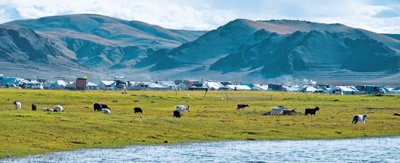 牧民在湖边搭起帐篷,一起劳作,一起交流。 |