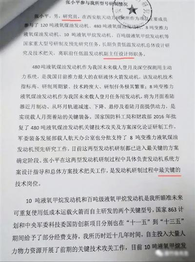 新京报记者了解到,题为《张小平参与我所型号研制情况》的公文通过《离职》一文进入公众视线之前,已经在航天圈流传了数日。