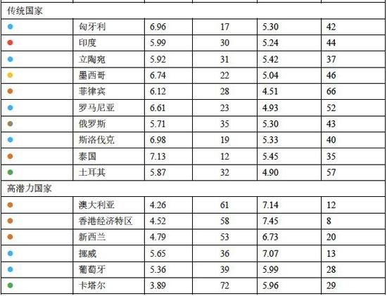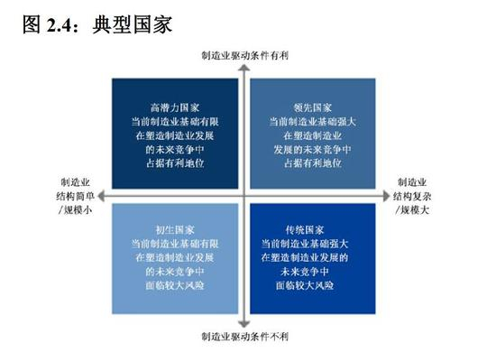 因此,报告中涉及到的分类和排名,都只是按照各国制造业结构和驱动因素加权得分分出来的(详细得分排名见文末)。