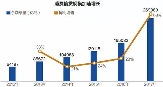 消费支出逐年上升,一方面因为我们挣的多了,另一方面借钱消费也是推手之一。