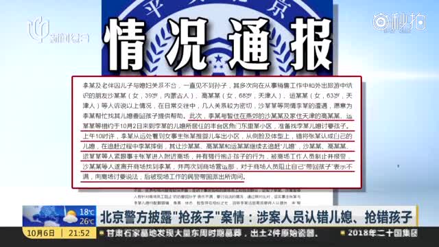 北京警方披露“抢孩子”案情:涉案人员认错儿媳、抢错孩子