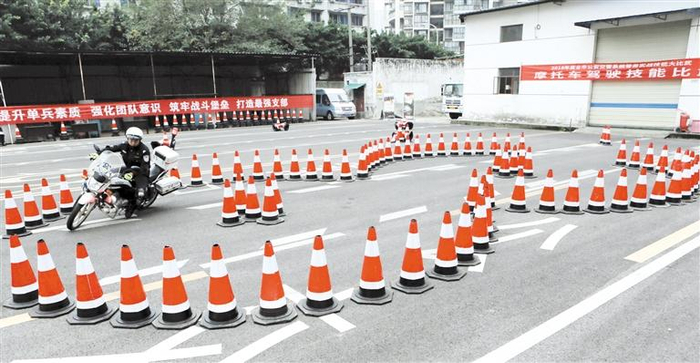 蛇形绕桩筒、八字绕桩筒、十字桩绕行……警摩如蝴蝶穿花般行驶其中,速度和技巧缺一不可。昨日,全市公安交警系统摩托车驾驶技能比武举行,22支队伍的84名民警一决高下。据市交管局政治处教导大队教官孔亮介绍,摩托车是交警最常用的交通工具,希望通过此次技能比武,提高民警的驾驶技能。明年世界警察和消防运动会将在成都举行,摩托车驾驶技能是项目之一,这次比武既是练兵也是选拔队员,同时也为办赛积累经验。