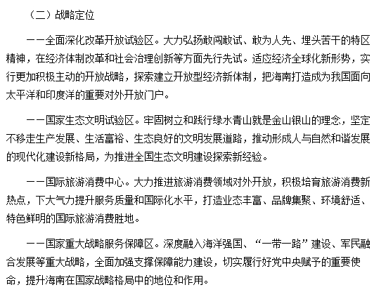 4月15日,《人民日报》头版刊发了《中共中央国务院关于支持海南全面深化改革开放的指导意见》,其中提到海南的战略定位是: