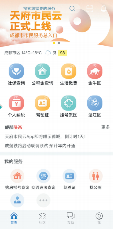 一站式“互联网+”市民服务平台,“天府市民云”APP正式上线