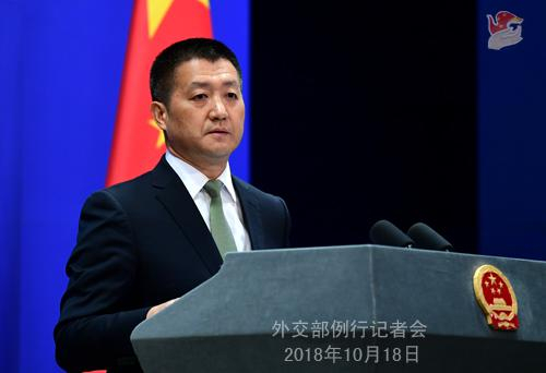 原标题:2018年10月18日外交部发言人陆慷主持例行记者会