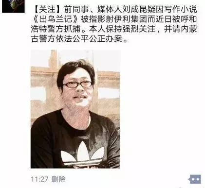 直到2018年3月,自媒体人刘成昆在公众号“天禄财经”上发表了连载小说《出乌兰记》。这篇文章含沙射影,被外界视为意在暗喻伊利集团领导层腐败。随后,“伊利股份董事长潘刚被带走协助调查”的消息在网络上传播开来,导致伊利股份当天市值蒸发60多亿元。