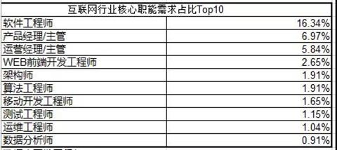 从热门岗位看,猎聘大数据显示,今年第三季度互联网行业核心职能需求前三名分别是软件工程师、产品经理/主管、运营经理/主管。之前号称“各个公司都缺”的数据分析师岗位,需求占比仅为0.91%。
