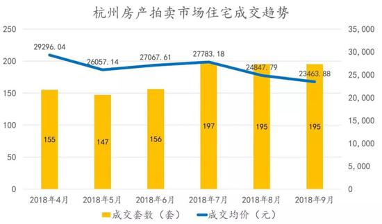 近日,阿里拍卖发布了《9月杭州房地产市场月报》,报告中称,9月份杭州房产拍卖市场住宅成交均价为23463.88元/㎡,为半年来最低,溢价率这半年来也是一路下滑。