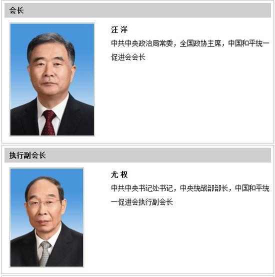 10月25日,中共中央政治局常委、全国政协主席汪洋多了一个职务——中国和平统一促进会会长。