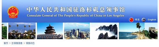 中华人民共和国驻洛杉矶总领事馆官网截图