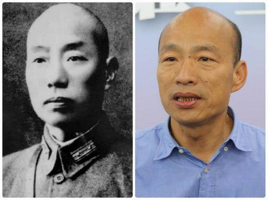 原标题:韩国瑜神似抗日名将 台网友:一个抗绿一个抗日