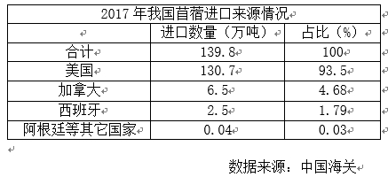 需要说明的是,美国作为世界上第一大苜蓿种植国,也是中国苜蓿进口的主要来源国。2017年,从美国进口的苜蓿量占中国总需求量的33.5%。