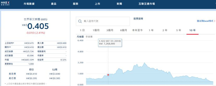 1991年3月22日,明报集团在香港交易所上市(港交所代码:685,现名为“世界华文媒体”),当时市值达到7.8亿港元。当时金庸握有60%股权,沈宝新占15%,公众占25%。