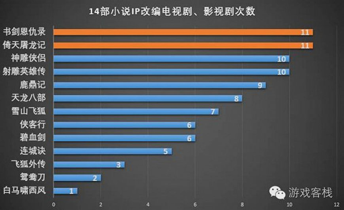 作为华人世界当之无愧的“第一大IP”,金庸作品被搬上荧屏的次数远远超过其他同类作家。这一方面使得金庸的著作“常看常新”,捕获着从60后到00后年龄层的广大粉丝;另一方面影视和游戏改编也创造了巨大的经济效益,间接养活着许多从业人员。