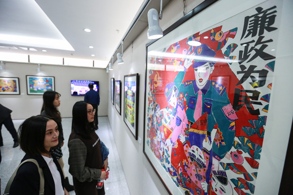 活动当天,与会人员还观摩了“清廉你我 幸福永伴”廉政农民画现场创作展示活动。廉政农民画作者在现场用廉政农民画、伞画、蚕匾画、毛衫零料贴画、刮画等形式,展示清廉浙江的建设成果以及美好期盼。