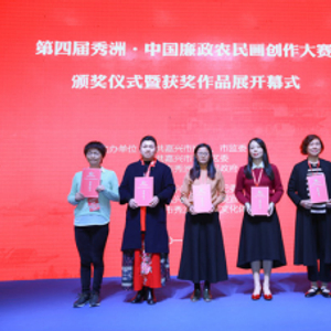 10月26日下午,第四届秀洲?中国廉政农民画创作大赛颁奖仪式暨获奖作品展开幕式在秀洲·中国廉政农民画展示馆举行。此次大赛以“清廉你我幸福永伴”为主题,自今年8月面向全国启动作品征集以来,共收到来自17个省(区、市)的廉政农民画作品439幅。经专家评审,共评出获奖作品79幅。