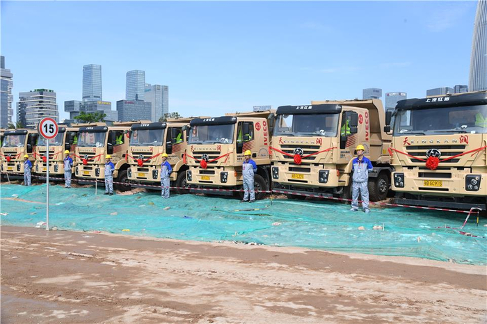 ↑10月31日,深圳市首批新型泥头车正式启用启动仪式举办。