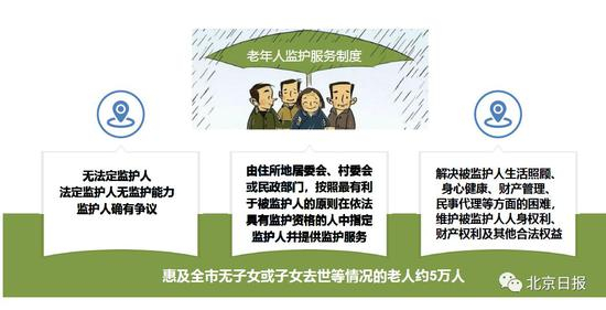 比如,提出建立老年人监护服务制度。为落实《民法总则》关于监护制度的有关规定,从今年起,积极开展老年人监护服务工作试点。目前,相关政策文件正处于研究起草阶段。