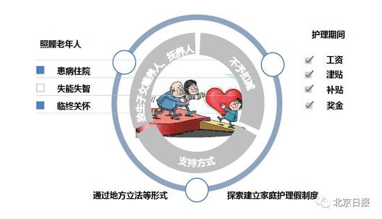 另外,提出探索建立家庭护理假制度。探索通过修订《北京市老年人权益保障条例》等地方条例的形式建立家庭护理假制度,支持家庭成员照顾老年人。