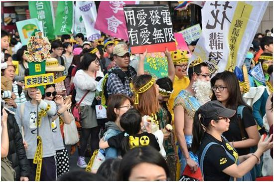 事实上,电力供应不足一直是困扰台湾当局的一大难题。而建立“非核家园”是民进党政府选前就提出的承诺。2015年反核大游行甚至打出“用爱发电大队”“用爱发电,有爱无限”等标语。蔡英文也到场支持。