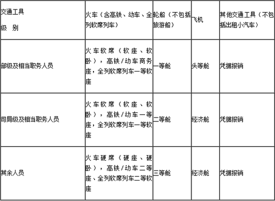 2013年12月,财政部发布《中央和国家机关差旅费管理办法》,办法规定“出差人员应当按规定等级乘坐交通工具”: