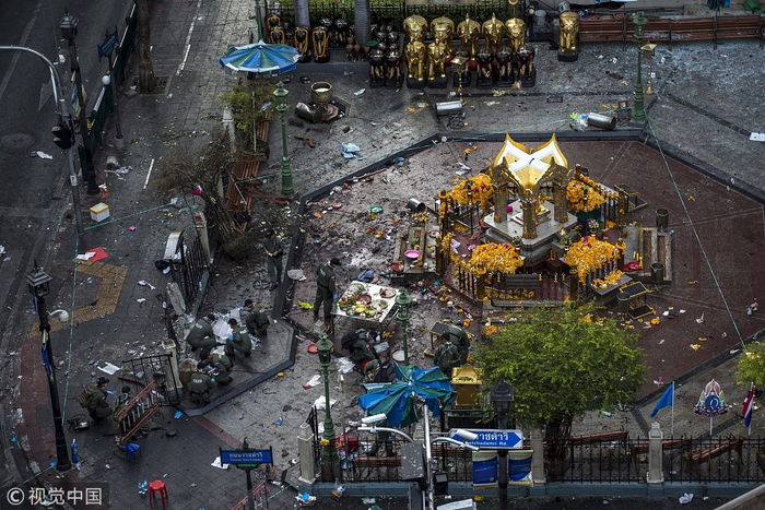 泰国四面佛爆炸现场图。 图片来源/视觉中国