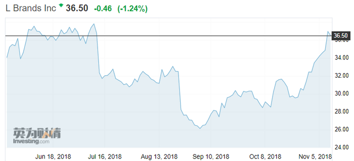 受维密秀影响,L Brand本周四股价微涨至36.96美元/股,但周五又小幅下跌至36.50美元/股。而且,这一数字相比年初时的58.56美元/股还是跌去了不少。