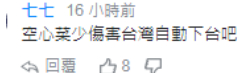 还有留言称,“我后悔2016年让你冲破玻璃天花板,悔恨啊”“蔡英文少伤害台湾,自动下台吧”。