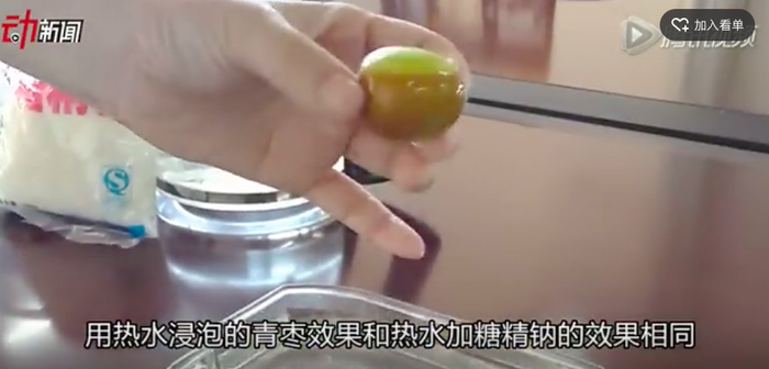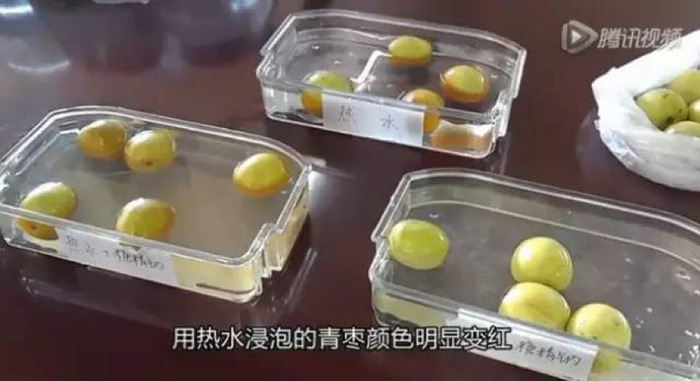 实验2 热水+糖精钠浸泡:青枣变红 表皮很甜