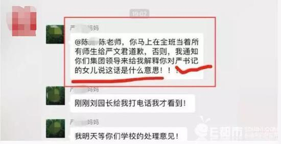 “官威浩荡”引发其他家长不满,家长们除了决定集体到幼儿园为“被开除”的老师请愿,同时微信截屏在互联网开始流传。