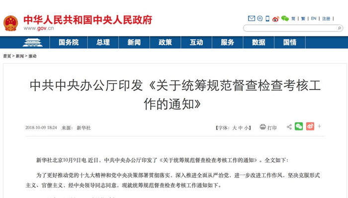 巧合的是,就在10月8日全椒县纪委给予张伟警告处分之后一天,中办、国办就下发了《关于统筹规范督查检查考核工作的通知》。里面有这么一句关键性表述:“考核中发现的问题,要以适当方式进行反馈,加强督促整改,不能简单以问责代替整改,也不能简单搞终身问责。”