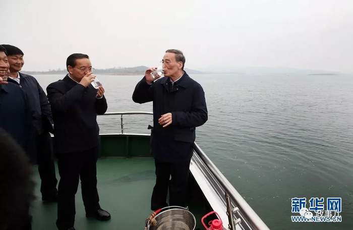新京报记者注意到,11月15日,王岐山乘船考察丹江口水库生态环境保护情况时,试喝了刚从水库打上来的清水。