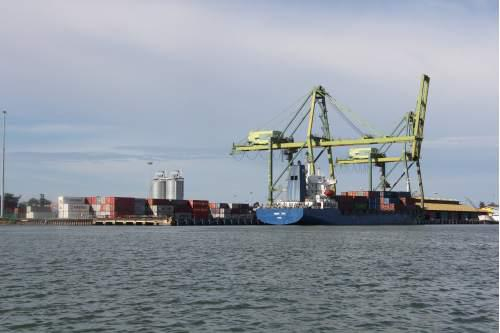 摩拉港工人正在进行集装箱装卸作业。人民日报记者 林芮摄