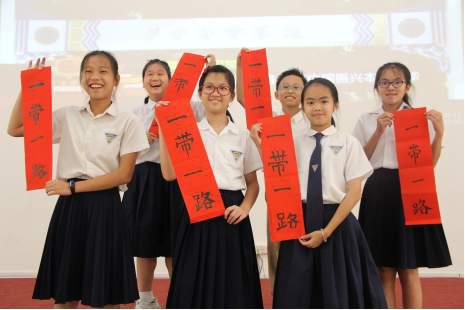 文莱中华中学学生用毛笔书写“一带一路”。人民日报记者 孙广勇摄