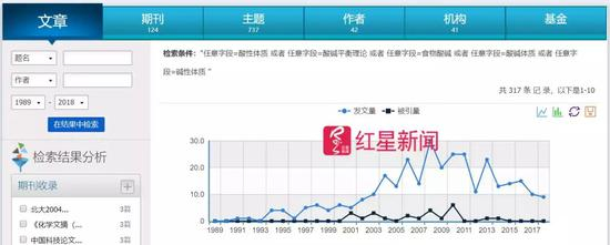 在维普资讯中文期刊服务平台上,以“酸性体质”作为检索词,可查找到241条记录。如果增加相关检索词,扩展至最贴近该理论的“碱性体质”、“酸碱平衡理论 ”、“酸碱体质 ”和“食物酸碱 ”,则共检索到317条结果。