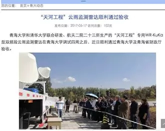 “天河工程云雨监测雷达”通过青海大学及青海省财政厅验收。