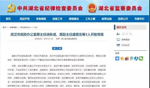 2018年10月18日,湖北省纪委监委网站发布通报,因违规调动、提拔在民防系统工作的领导干部子女等违法违纪行为,给予湖北省武汉市民防办原主任徐秋成开除党籍、开除公职处分,收缴违纪违法所得;将涉嫌犯罪问题及涉案款物移送司法机关依法处理。