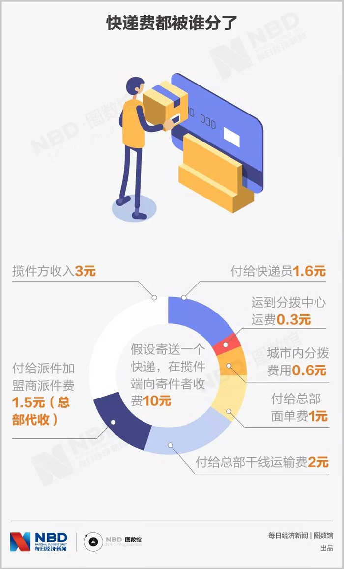 你付的快递费中,快递公司总部只能从中收取一部分归自己所有,其他都是加盟商瓜分。
