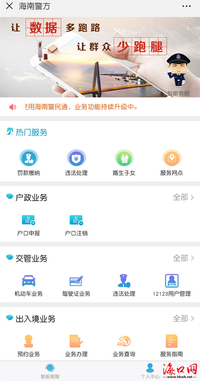 “海南警民通”便民服务平台。
