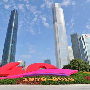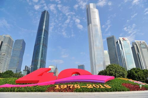 花城广场上庆祝改革开放40周年的大型装饰组件