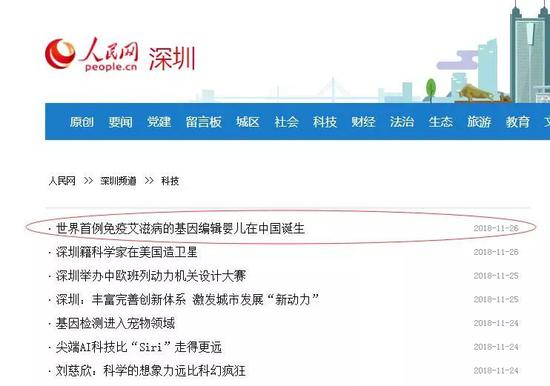 今天,人民网刊发了一篇《世界首例免疫艾滋病的基因编辑婴儿在中国诞生》的报道。