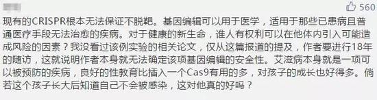也有专家认为,该事件对于大众的科普价值还是值得肯定的。不久前,中山大学研究团队发布了国内首份针对普通公众和HIV携带者关于基因编辑认知的比较报告,超六成受访者对基因编辑技术的运用持积极态度。