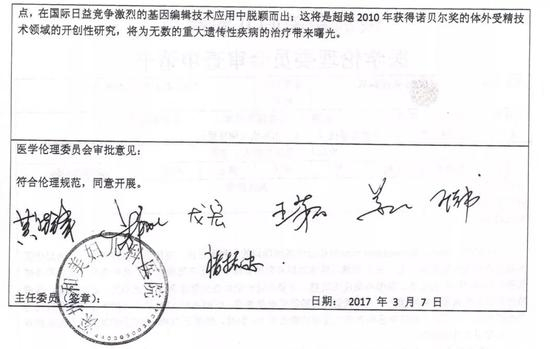 伦理是焦点问题,贺建奎团队出示了伦理审查书: