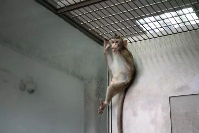 一到中午,它们也会像人一样,头低下去,坐着打个盹。晚上7点,统一熄灯,猴房才会逐渐安静下来。早上7点,只要一听见开门的声音,这里又会开启喧闹的一天。