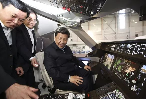 在2014年5月,习近平曾到中国商飞设计研发中心,登上自主研制的C919大型客机展示样机,坐在驾驶舱主驾驶的座位上,了解速度表、高度表、航迹图等有关仪器仪表情况。
